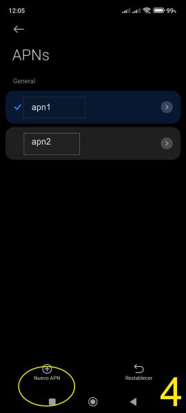 Paso 4: Pulsar Nuevo APN