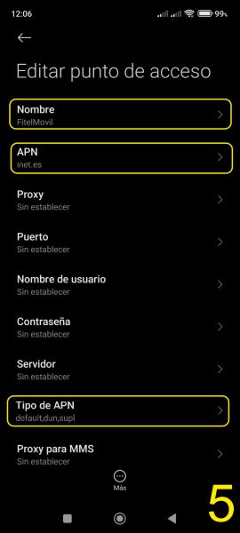 Configuración APN en Android
